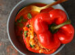 5. Grate some cheese on top and cook until the peppers are tender (about 30 minutes).